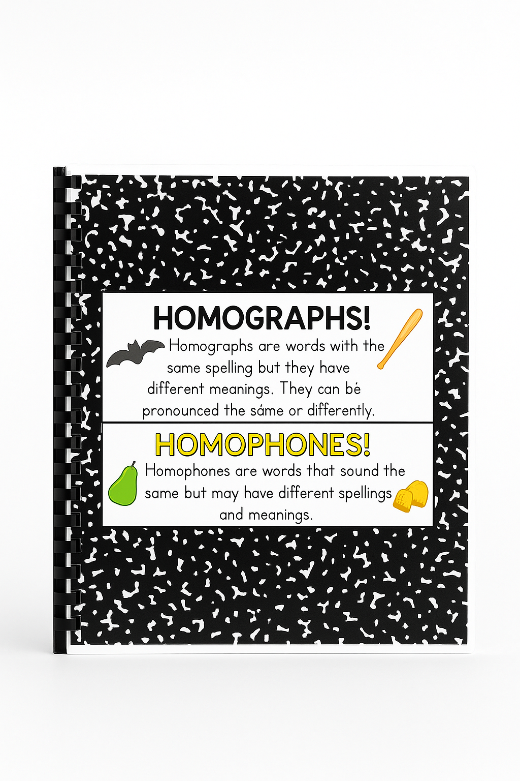 This 20-page Homograph and Homophone workbook is designed to help children understand tricky words that sound or look alike, choose the correct word in context, and build stronger vocabulary skills. With a wipe-clean, dry-erase surface, kids can practice again and again—perfect for everyday use! Plus, two interactive Velcro pages add a hands-on learning experience they’ll love!