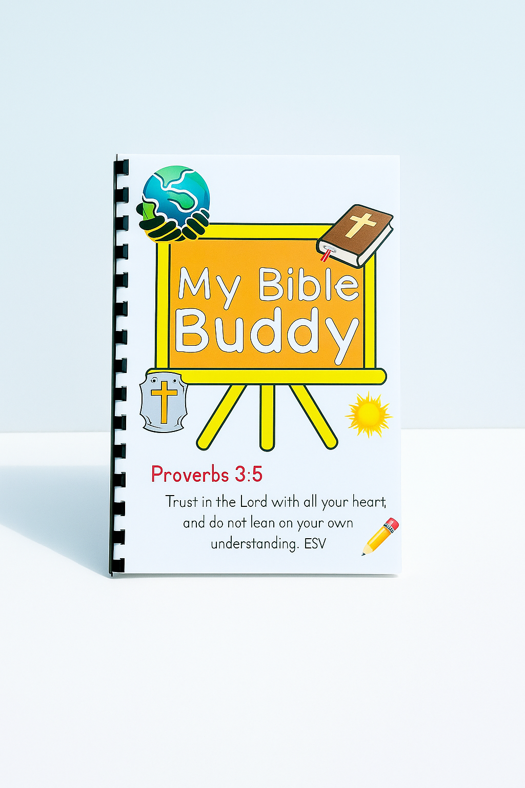 Our Bible Buddy is the perfect on the go learning booklet for any child to practice decoding, learning and reciting scripture. With 18 different memory verses, a page dedicated to writing out prayers, and a reflection and journaling page, your child will truly have a great time learning the word of God.